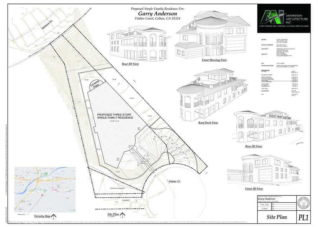 VIEW & OWNER WILL CARRY - EXCLUSIVE NEIGHBORHOOD OF INDIAN KNOLLS in East Colton Heights - PICTURE YOUR Dream Home View PROPERTY in Prestigious East Colton Heights aka Indian Knolls with preliminary Architectural drawings for 3 kitchens, indoor pool, RV & 2 Car Garages with 4 levels and an ELEVATOR for a 7,532 sq. ft. home. OWC 100% financing plus loan additional money for construction. Owner also has a 2nd PROPERTY on Cindee Lane that is available in the same neighborhood with house plans on other homes built in the same neighborhood at 3,500 sq. ft. All utilities are stubbed onsite with curb, gutter & sidewalk. CLOSE to Loma Linda & VA Hospital off Barton & Washington. Thank you